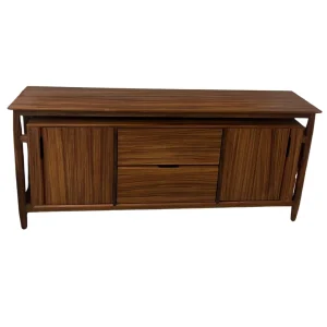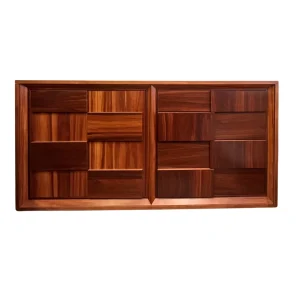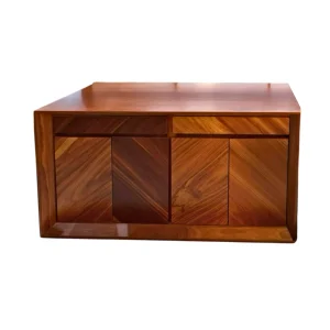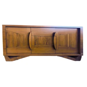 Buffete moderno de madera oscura con diseño geométrico. Líneas limpias y acabado elegante, ideal para un toque sofisticado en tu hogar.