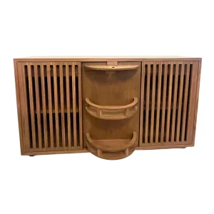 Buffete de madera marrón claro con un diseño elegante y curvado. Perfecto para añadir un toque funcional y decorativo a cualquier espacio.