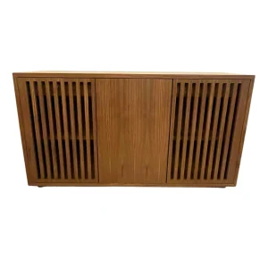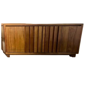 Buffet moderno madera oscura diseño lineal elegante y funcional con líneas verticales que aportan un toque contemporáneo a tu hogar.