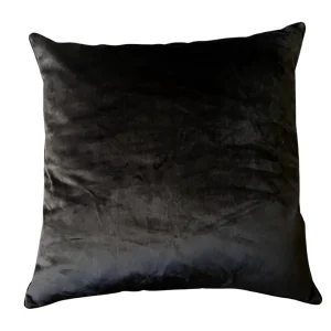 Cojín cuadrado de terciopelo en negro. Sueva y lujoso, perfecto para añadir confort y estilo.