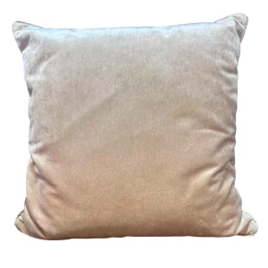 Cojín cuadrado beige de terciopelo. Su diseño sencillo lo hace ideal para complementar cualquier estilo de decoración.
