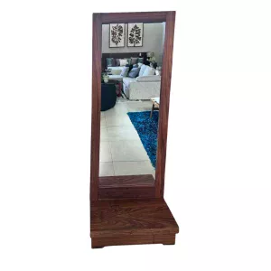 Espejo de cuerpo entero con marco de madera marrón oscuro. Elegante y funcional, ideal para cualquier espacio.