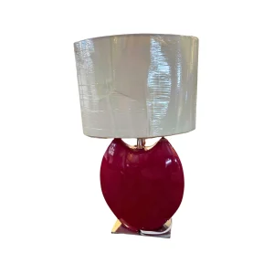 Lámpara de buró con base en rojo vibrante y pantalla blanca. Añade un toque de color y calidez a tu mesita de noche.