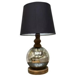 Lámpara de mesa con base de cristal oxidado y pantalla negra. Ideal para un toque elegante y vintage.