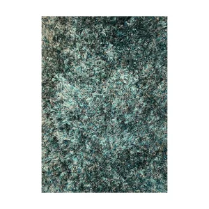 Tapete de pelo largo azul oscuro, esponjoso y con destellos en gris plateado. Perfecto para añadir estilo y confort.
