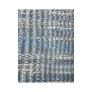 Tapete tejido en tonos azules y grises con diseño de franjas horizontales que aporta textura y estilo al espacio.