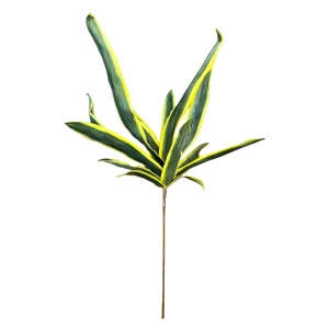 Rama de agave artificial con hojas verdes y amarillas. Diseño realista que añade un toque tropical a la decoración.