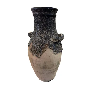 Jarrón grande de textura rústica y acabado en tonos oscuros, perfecto para aportar estilo a tus espacios.