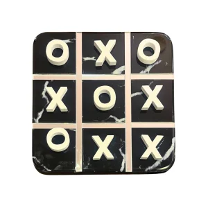 Juego de Gato (Tic-Tac-Toe) de lujo. Diseño moderno imitación mármol en negro veteado, perfecto para añadir un toque de estilo y diversión
