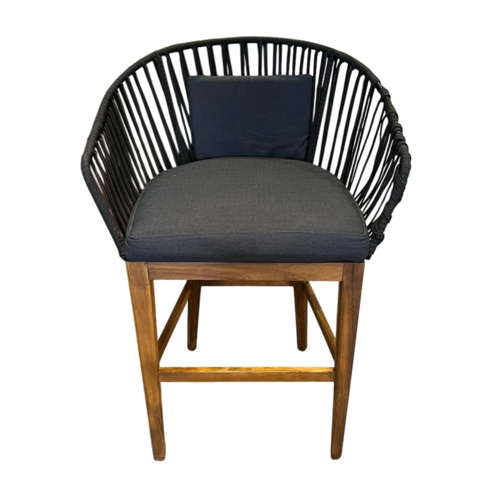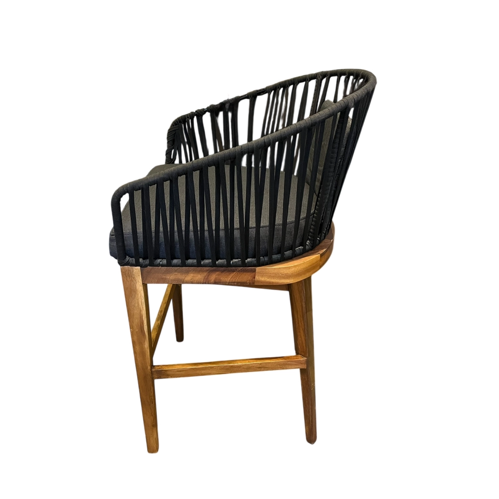 Banco alto negro tejido asiento tapizado moderno y cómodo este banco combina diseño contemporáneo con un toque artesanal