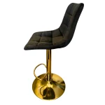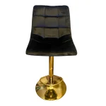 Banco negro giratorio de gamuza con diseño capitonado. Base dorada y asiento cómodo, perfecto para tu barra o cocina.