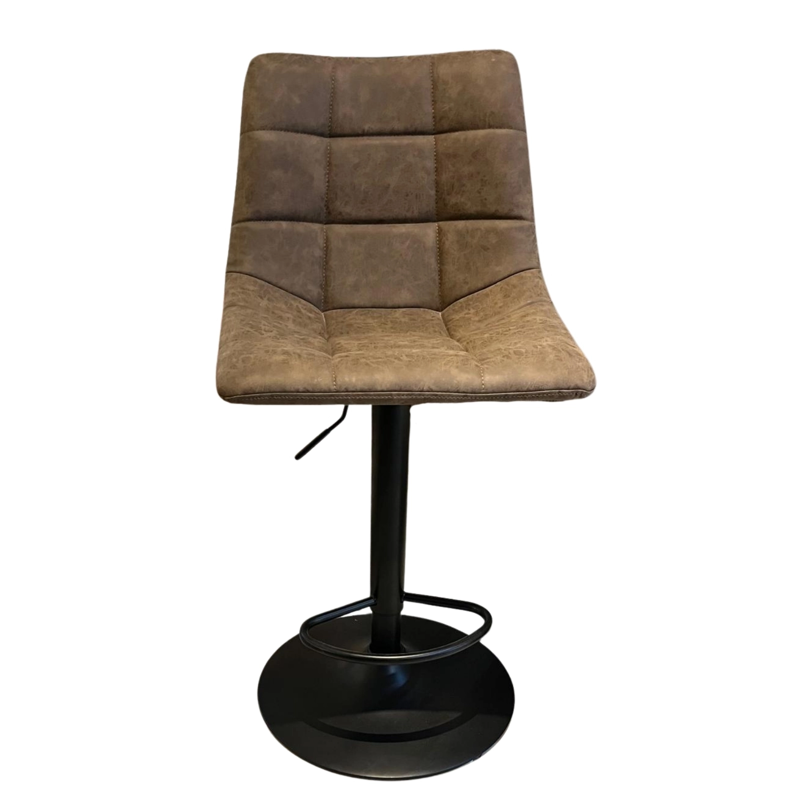 Banco giratorio de piel con diseño capitonado. Base metálica negra y asiento cómodo, perfecto para tu barra o cocina.