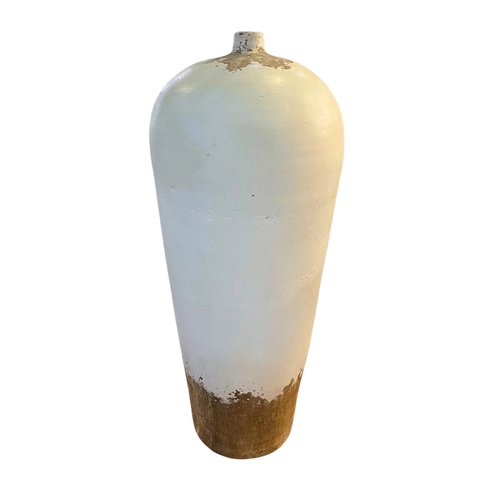 Botellón de barro blanco con acabado envejecido y detalles rústicos. Ideal para decoración vintage.