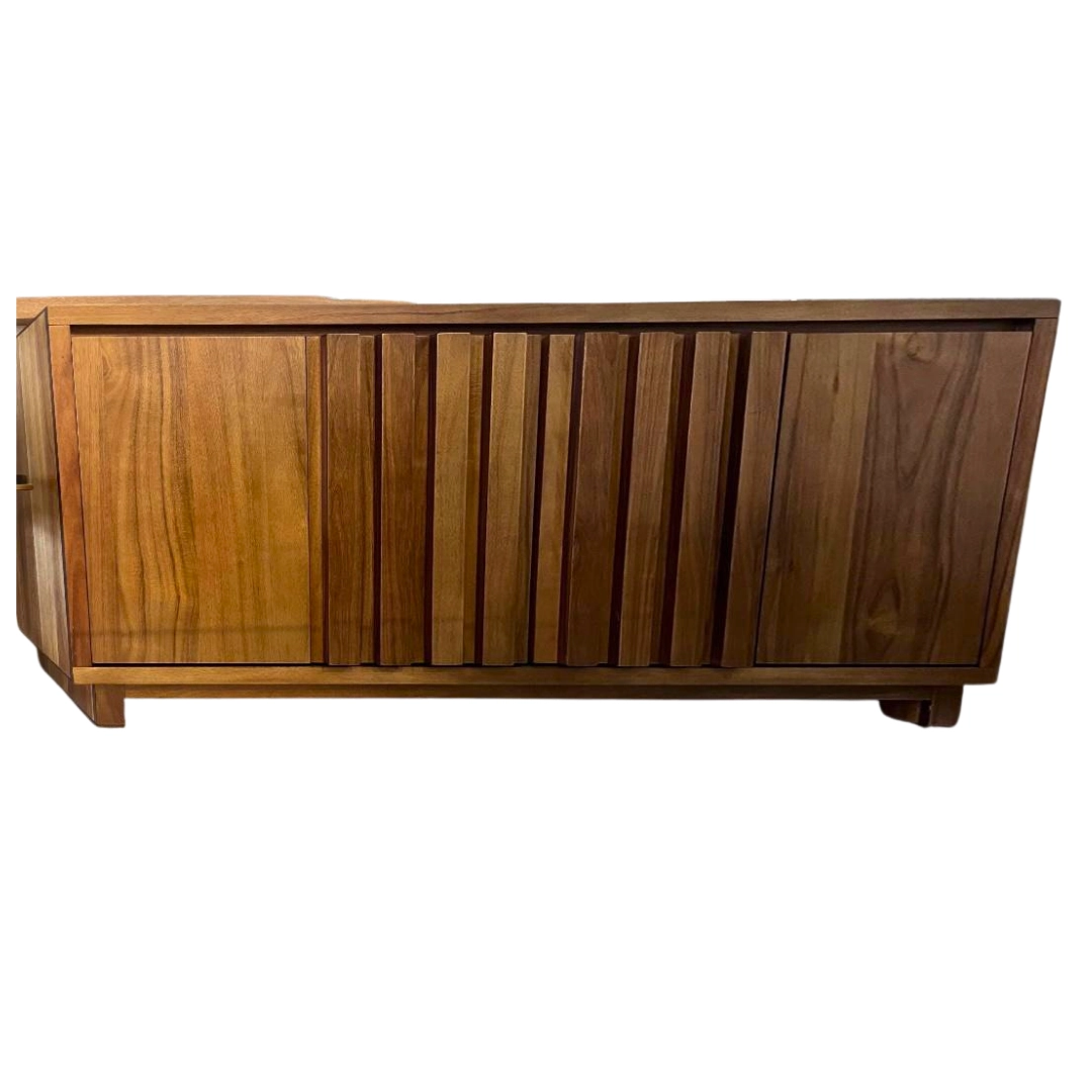 Buffet moderno madera oscura diseño lineal elegante y funcional con líneas verticales que aportan un toque contemporáneo a tu hogar.