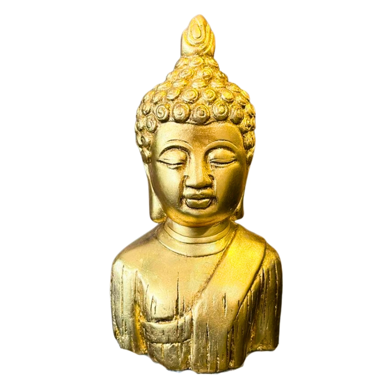 Escultura dorada de Buda, un elemento decorativo que aporta serenidad a cualquier espacio.