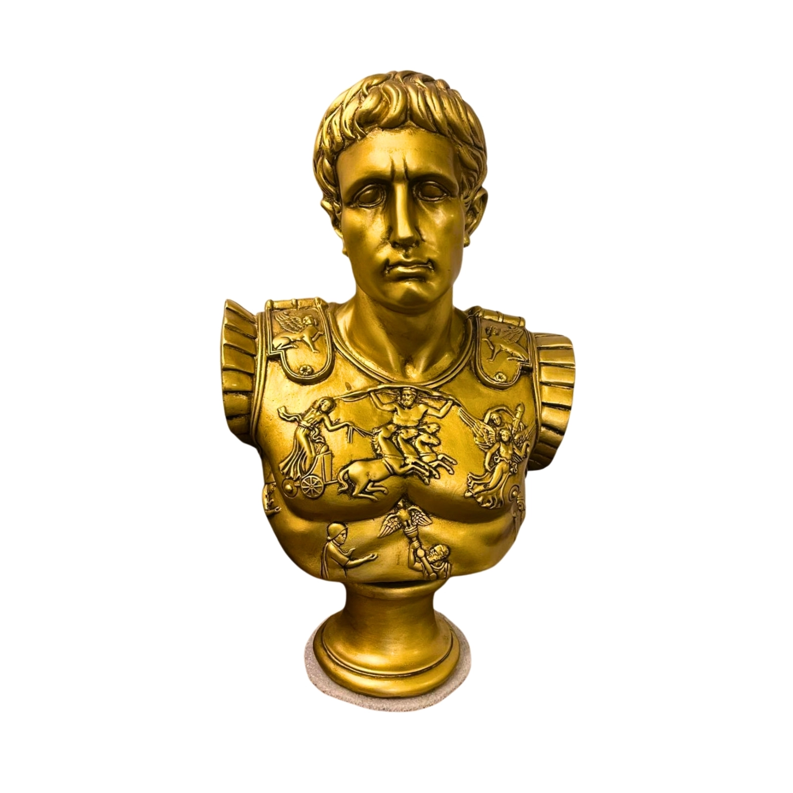 Busto decorativo en acabado dorado, inspirado en César Romano.