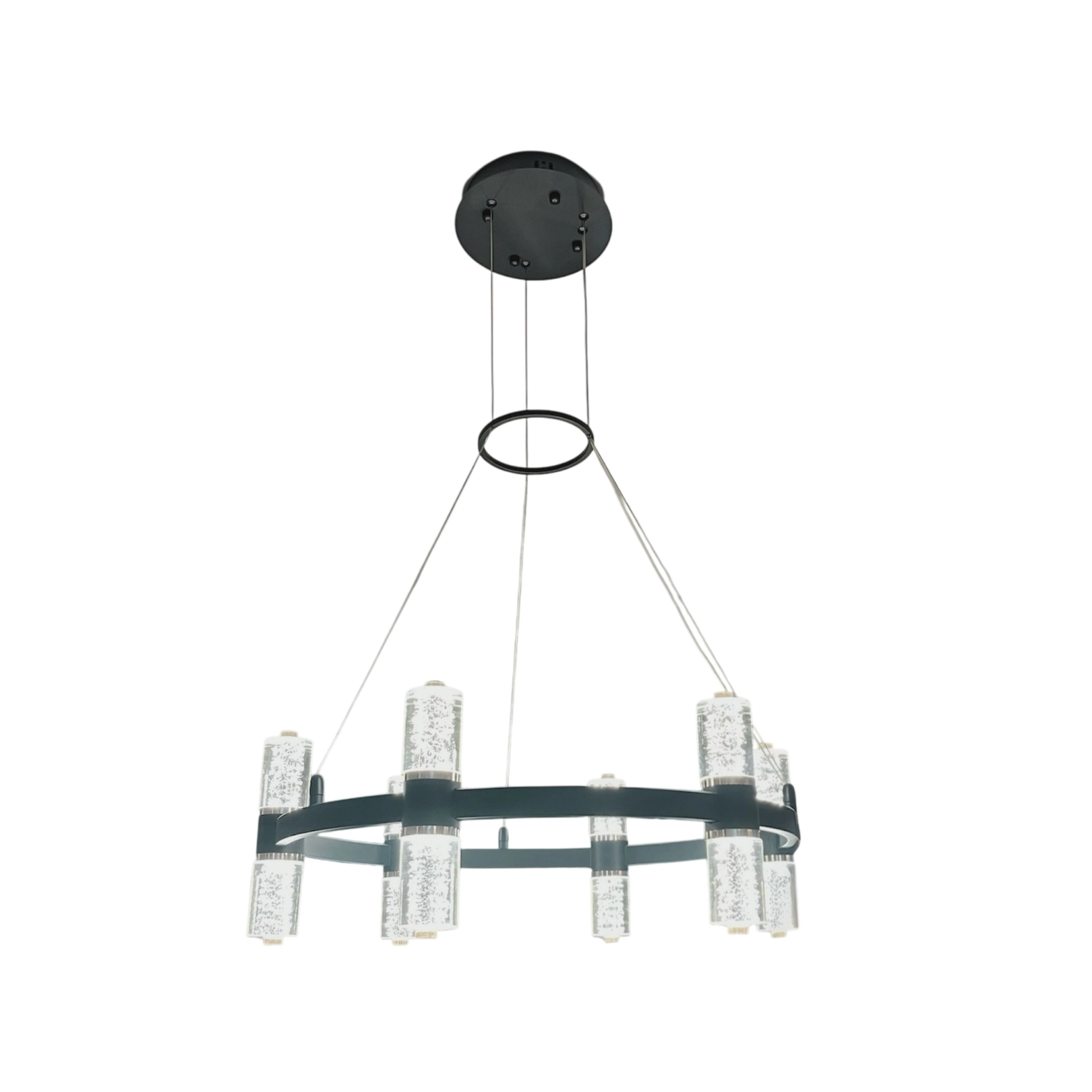 Candil Bilbao circular en negro, con elegantes luces de cristal que aportan un toque sofisticado y moderno a cualquier espacio.
