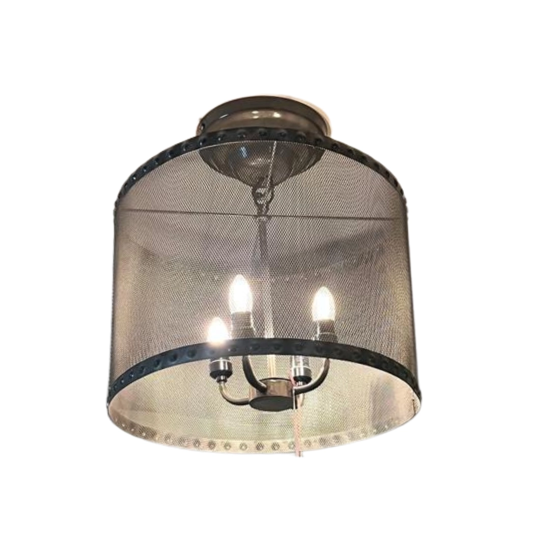 Lámpara de techo de estilo industrial con pantalla de malla metálica y cuatro bombillas. Su diseño moderno aporta un toque elegante y contemporáneo a cualquier espacio. Ideal para iluminar comedores o salas de estar.