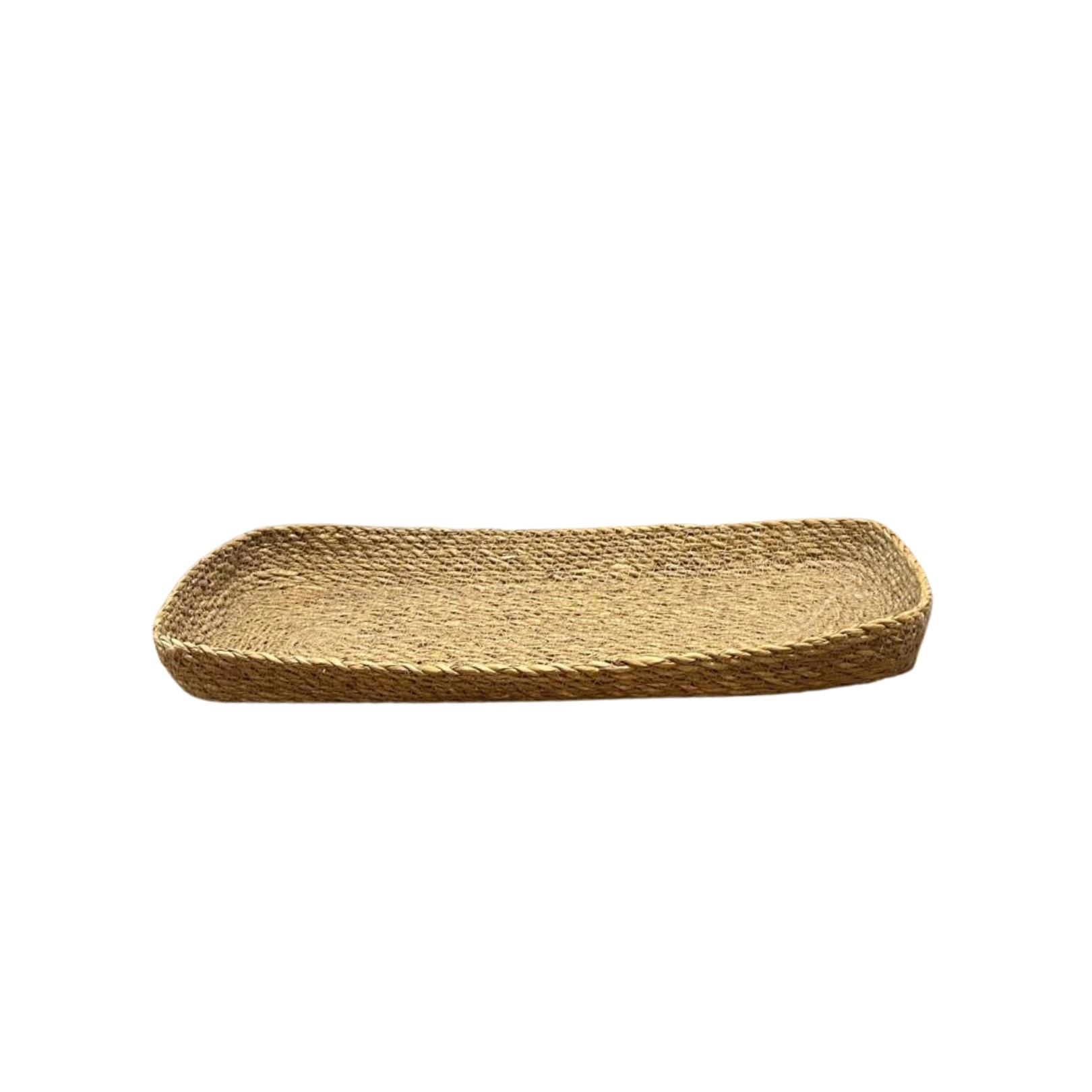 Charola de mimbre en tono beige, ideal para servir con estilo o decorar tus espacios con un toque natural