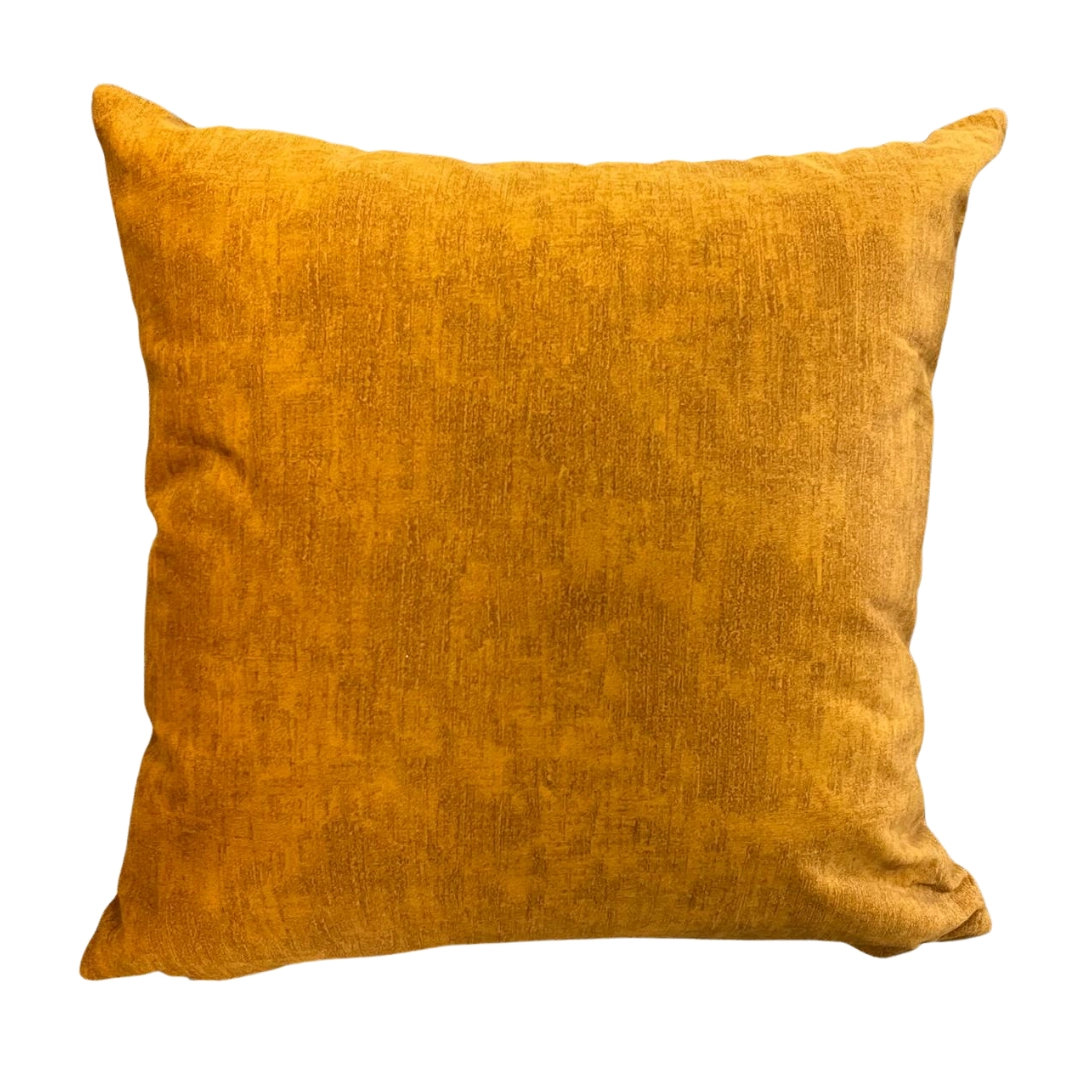 Cojín cuadrado amarillo mostaza con textura y relieves. Perfecto para un toque cálido y moderno.