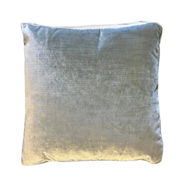 Cojín de terciopelo plateado con textura acanalada, perfecto para añadir un toque elegante y acogedor a tu sala.