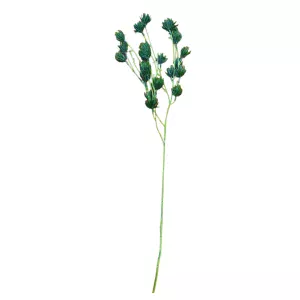 Rama decorativa con hojas verdes de acabado natural, ideal para aportar frescura y estilo a cualquier espacio, ya sea sola en un florero o como complemento en arreglos decorativos