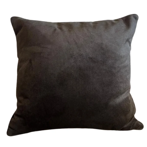Cojín rectangular de terciopelo gris oscuro, suave y acogedor. Ideal para aportar un toque moderno y elegante a cualquier sofá.