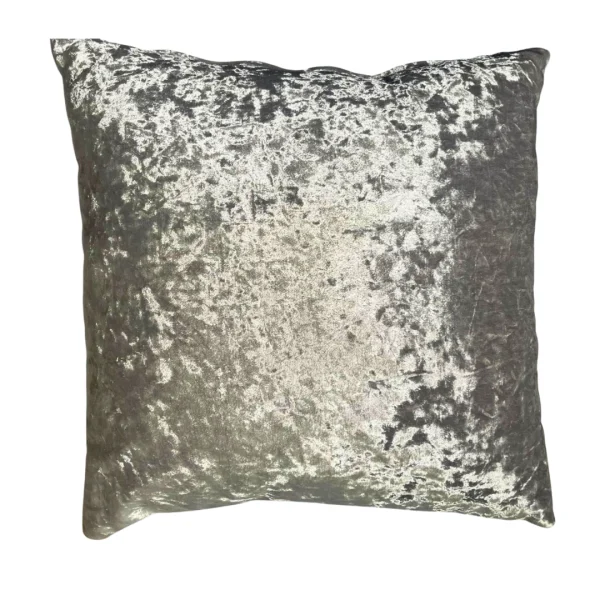 Cojín de terciopelo plateado con textura crushed velvet, que aporta un toque elegante y sofisticado a cualquier espacio.