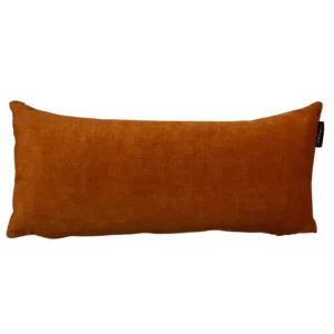 Cojín rectangular de color naranja rojizo con textura suave, ideal para aportar calidez y estilo a tu sofá.