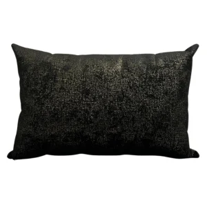 Cojín rectangular negro con un sutil brillo dorado, ideal para añadir elegancia y estilo a tu sofá.