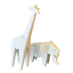 Figuras decorativas de elefante y jirafa de vidrio blanco con detalles dorados. Ideales para un toque moderno. Elefante 17 de alto x 24 de ancho. Jirafa 41 de alto x 19 de ancho