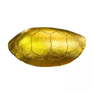 Caparazón de tortuga dorado con acabado brillante y detalles grabados. Perfecto como pieza decorativa única.