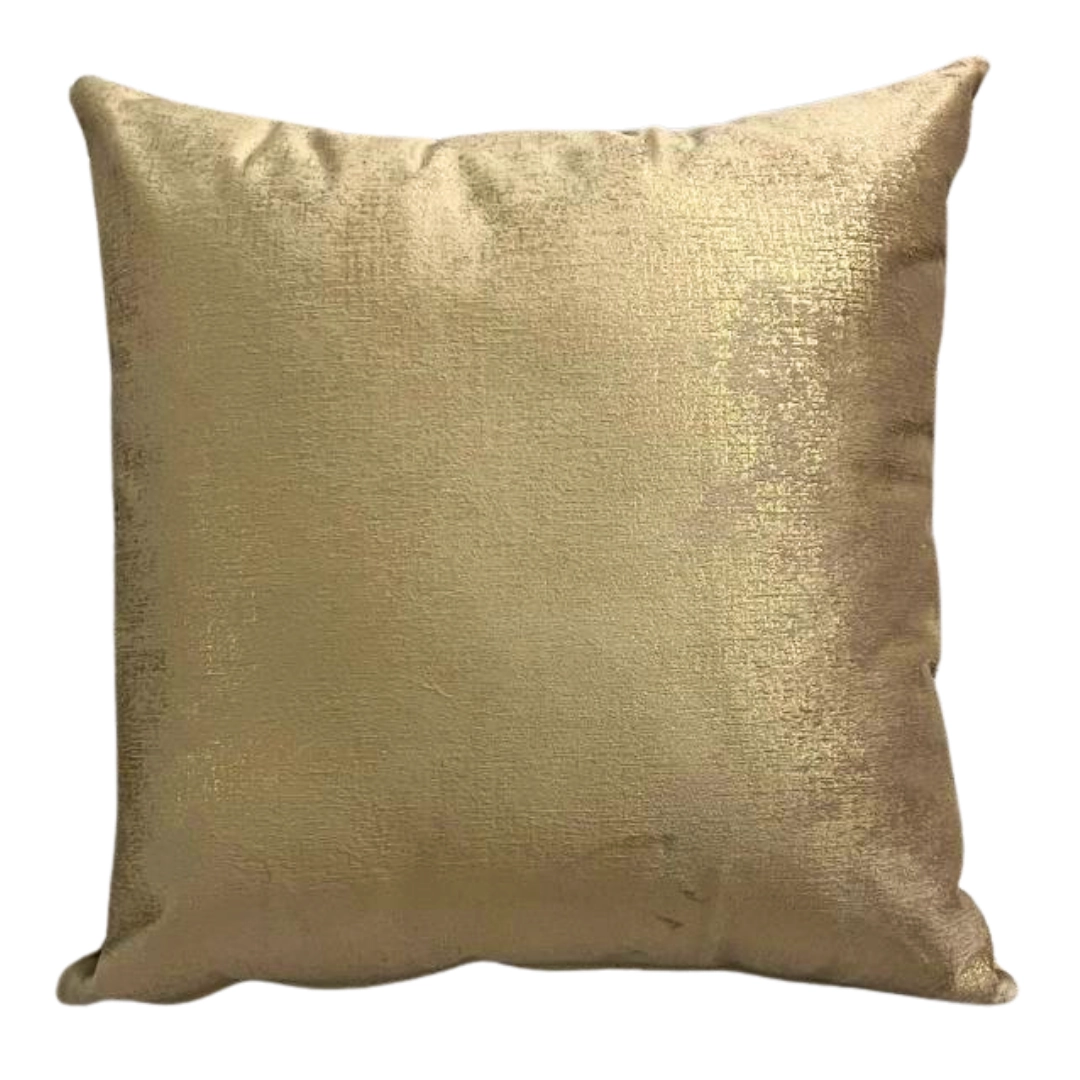 Cojín beige dorado con brillo metálico. Elegante y perfecto para cualquier decoración.