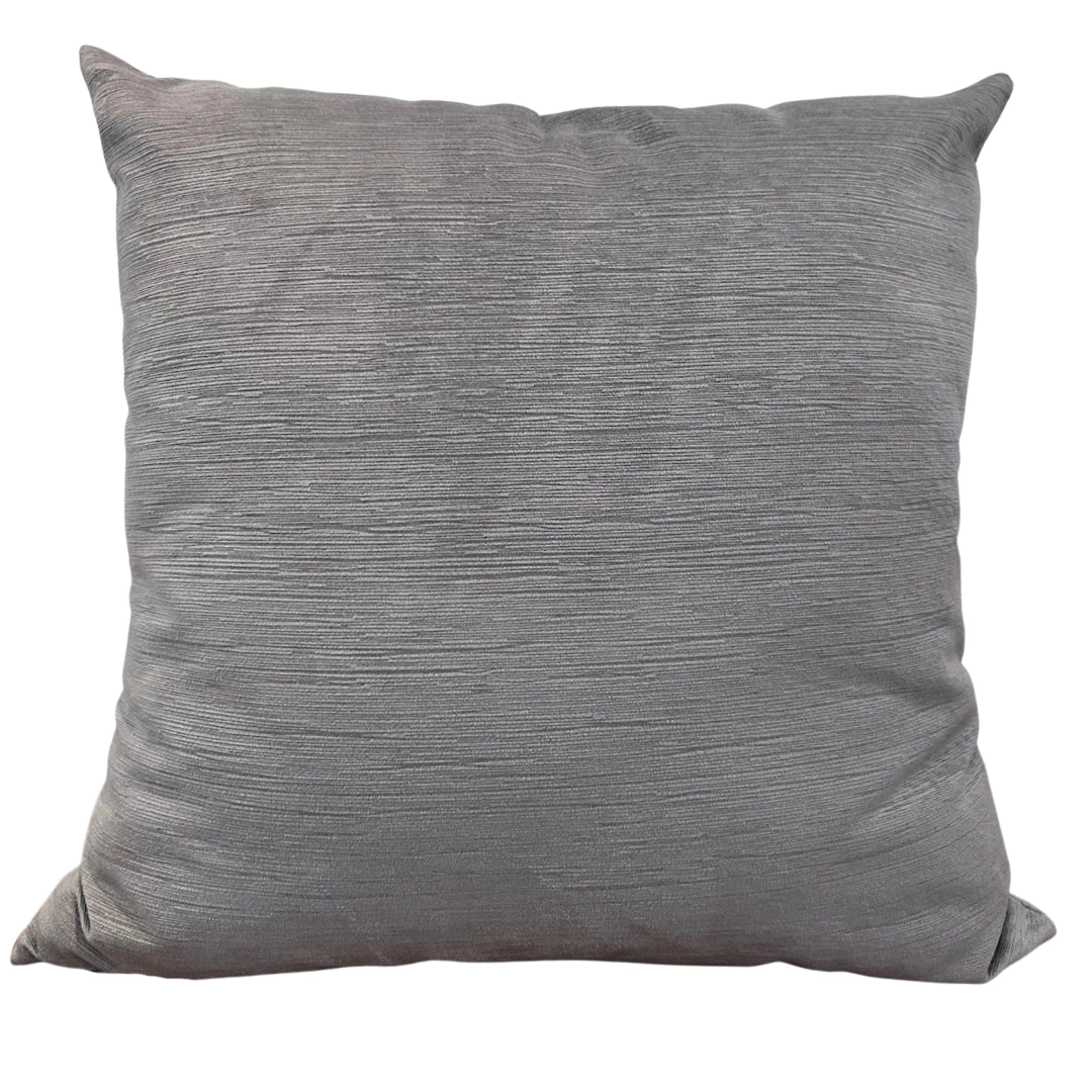 Cojín cuadrado de textura acanalada en gris medio. Su diseño moderno y tacto suave lo hacen perfecto para añadir confort y estilo.