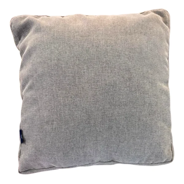 Cojín cuadrado en tonos grises y blancos, con textura suave y diseño de capas que aportan comodidad y estilo a cualquier espacio.