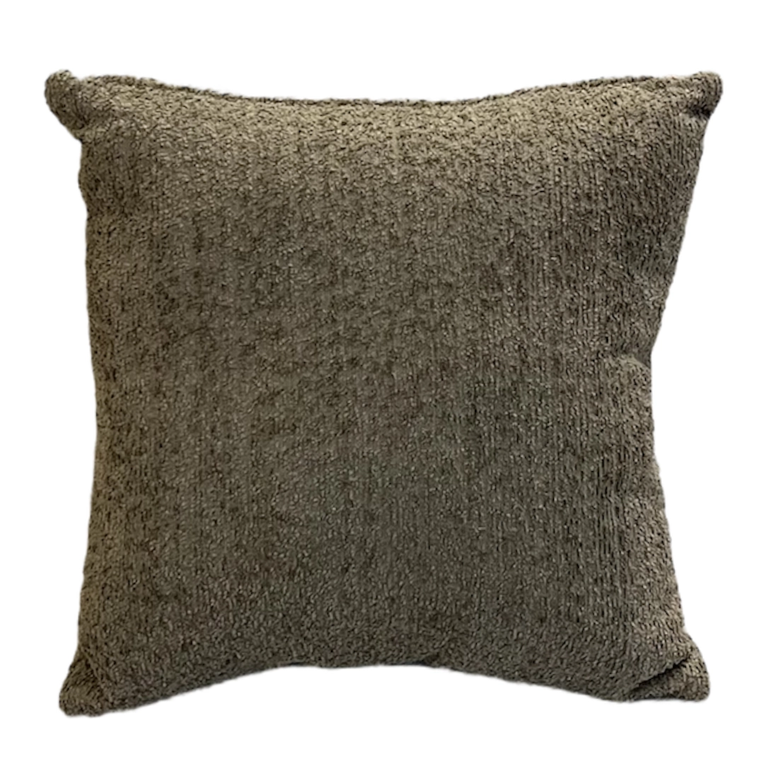 Cojín cuadrado de tela texturizada en tono gris neutro. Ideal para cualquier espacio.