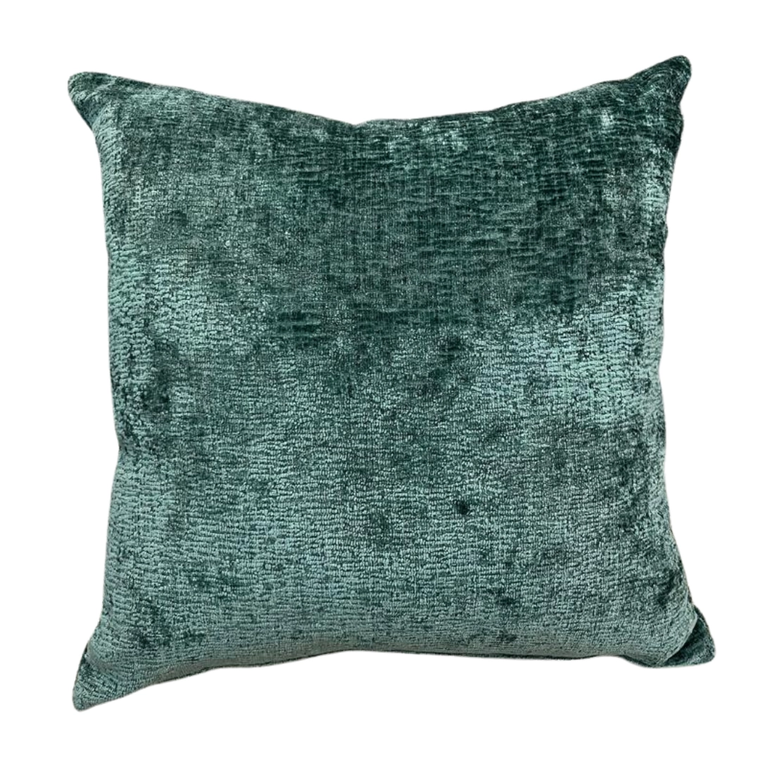 Cojín cuadrado color esmeralda con textura aterciopelada, ideal para decorar y aportar confort a tu espacio.
