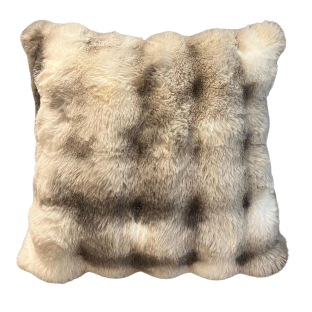 Cojín cuadrado de terciopelo en tonos beige, blanco y gris claro. Suave y esponjoso, ideal para añadir comodidad y estilo a tu sofá.