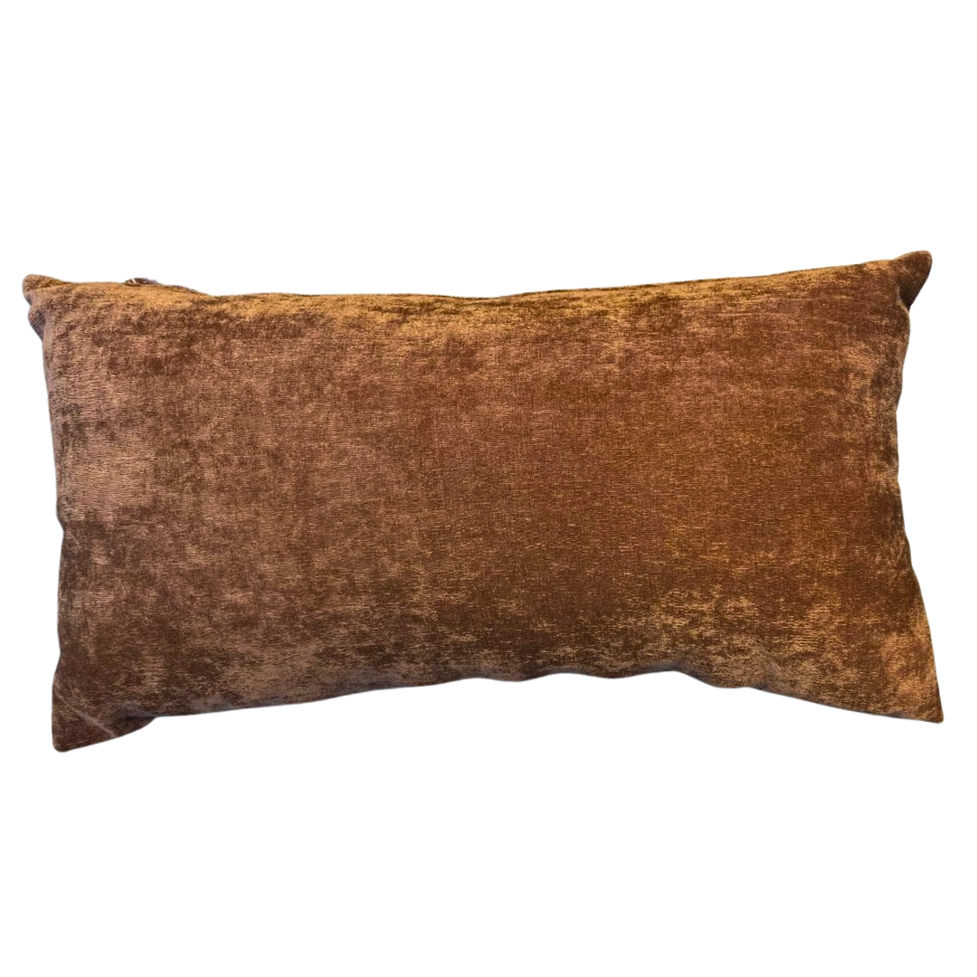Cojín rectangular de terciopelo marrón, suave y elegante, ideal para aportar calidez y estilo a cualquier espacio.