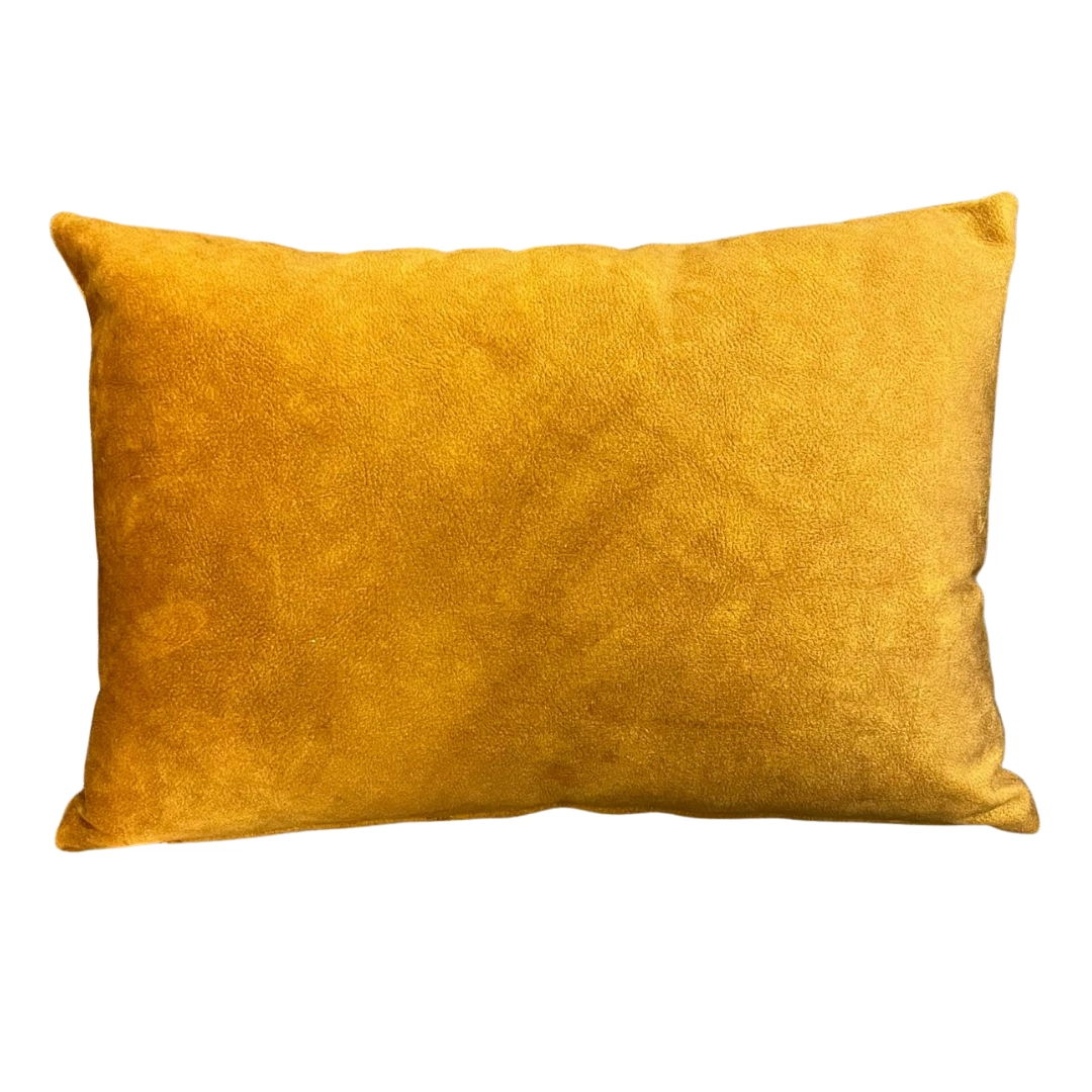 Cojín rectangular amarillo mostaza con textura suave. Ideal para añadir un toque vibrante.