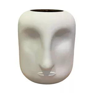 Jarrón blanco mate con diseño abstracto de rostro. Ideal para un toque moderno y minimalista.