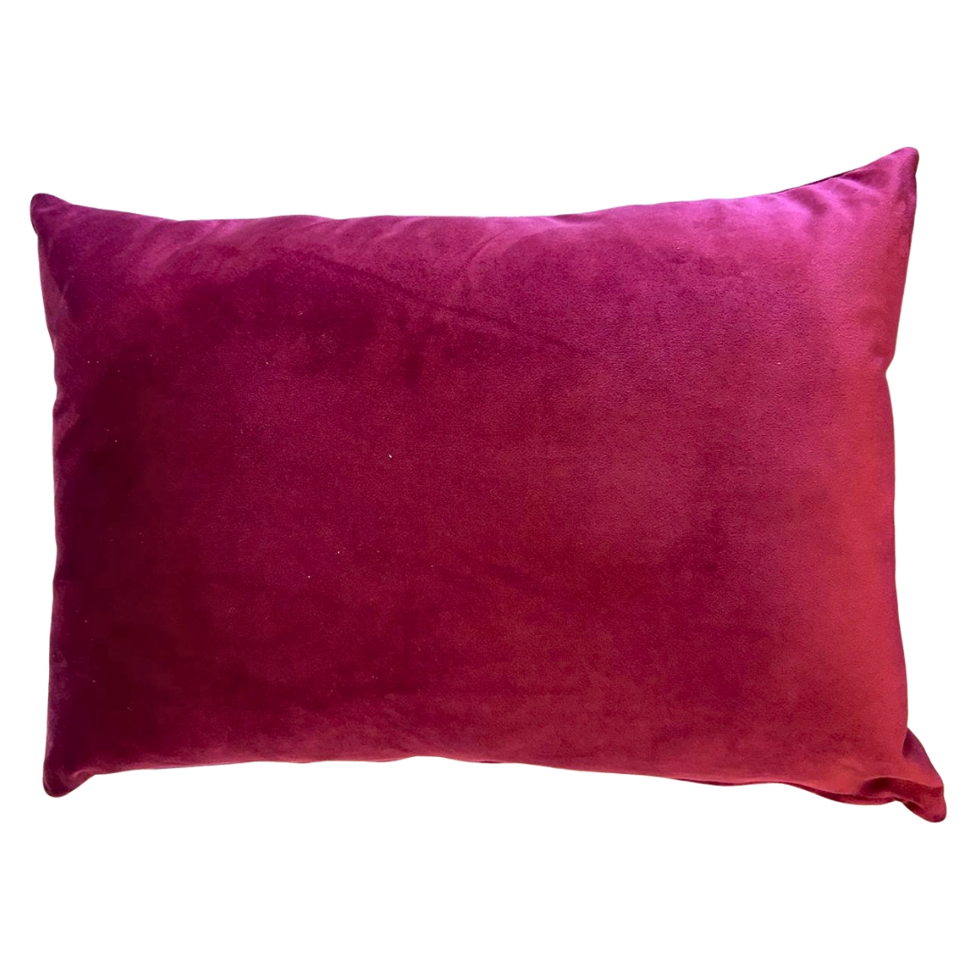 Cojín rectangular de terciopelo color vino, aporta un toque elegante y acogedor a cualquier espacio.