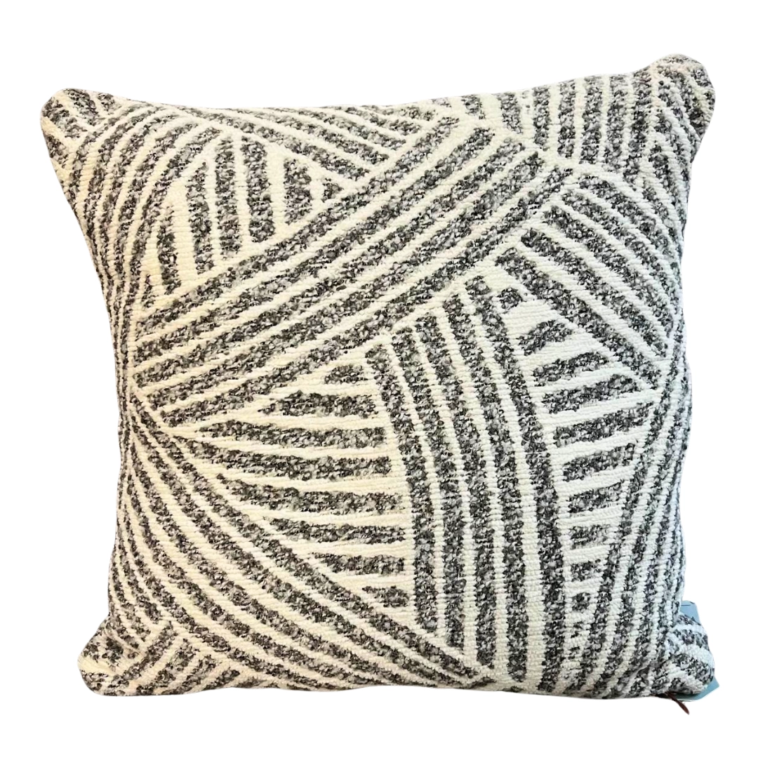 Cojín cuadrado con diseño geométrico en blanco y gris Textura elevada que aporta estilo y confort a cualquier sofá.