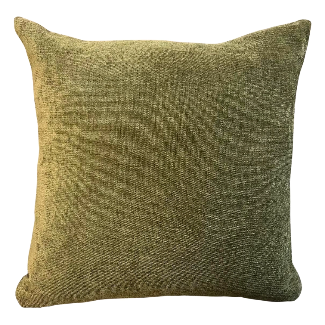 Cojín cuadrado de color verde oliva con textura aterciopelada. Ideal para un toque elegante y acogedor.