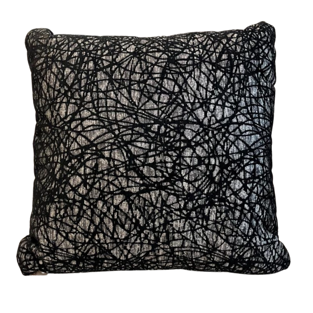 Cojín cuadrado negro con un elegante diseño de líneas entrelazadas. Ideal para complementar la decoración de tu hogar con estilo.