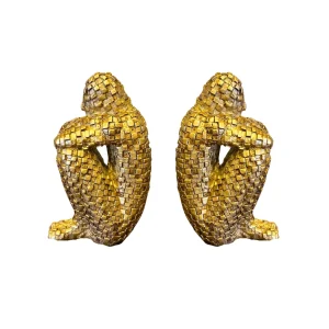 Escultura de mono dorado sentado, con acabado metálico brillante. Perfecta para un toque artístico.