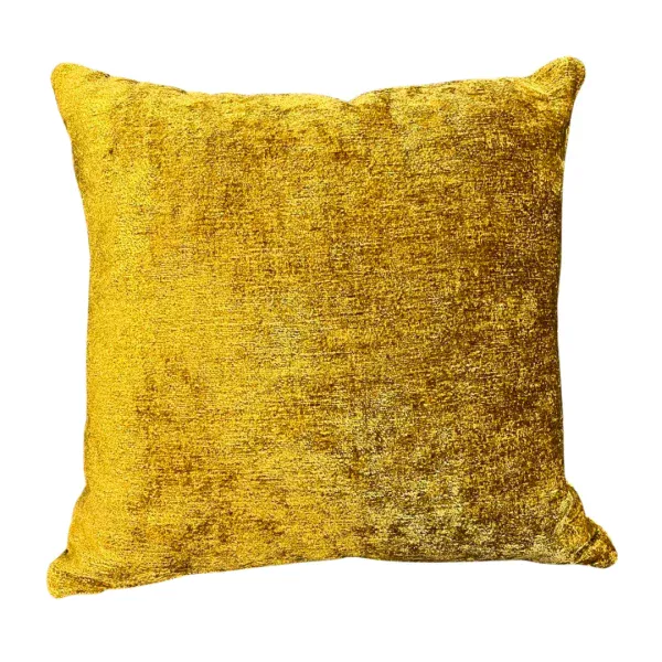 Cojín cuadrado dorado con textura aterciopelada. Ideal para un toque elegante.
