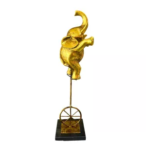 Elefante dorado sobre un monociclo, elegante y dinámico, ideal para cualquier ambiente.