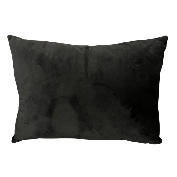 Cojín rectangular de color negro en suave terciopelo, ideal para añadir comodidad y estilo a cualquier sofá o área de descanso.