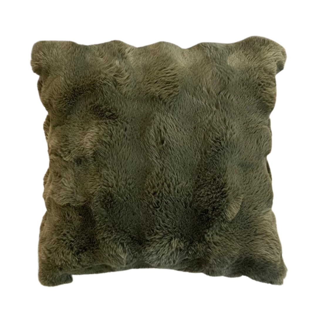 Cojín cuadrado de terciopelo verde oliva oscuro. Perfecto para añadir estilo y comodidad a cualquier sofá o silla.